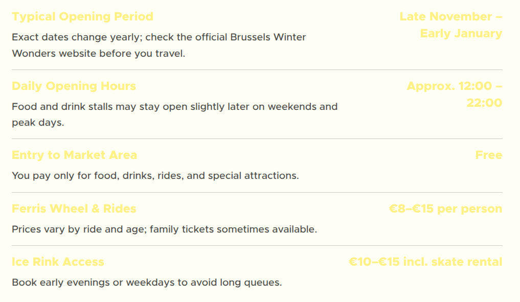 Use Brussels Central, De Brouckère, or Sainte-Catherine metro and tram stops. From there, follow the signs or crowds toward Winter Wonders. Public transport runs frequently, but allow extra time on busy evenings.